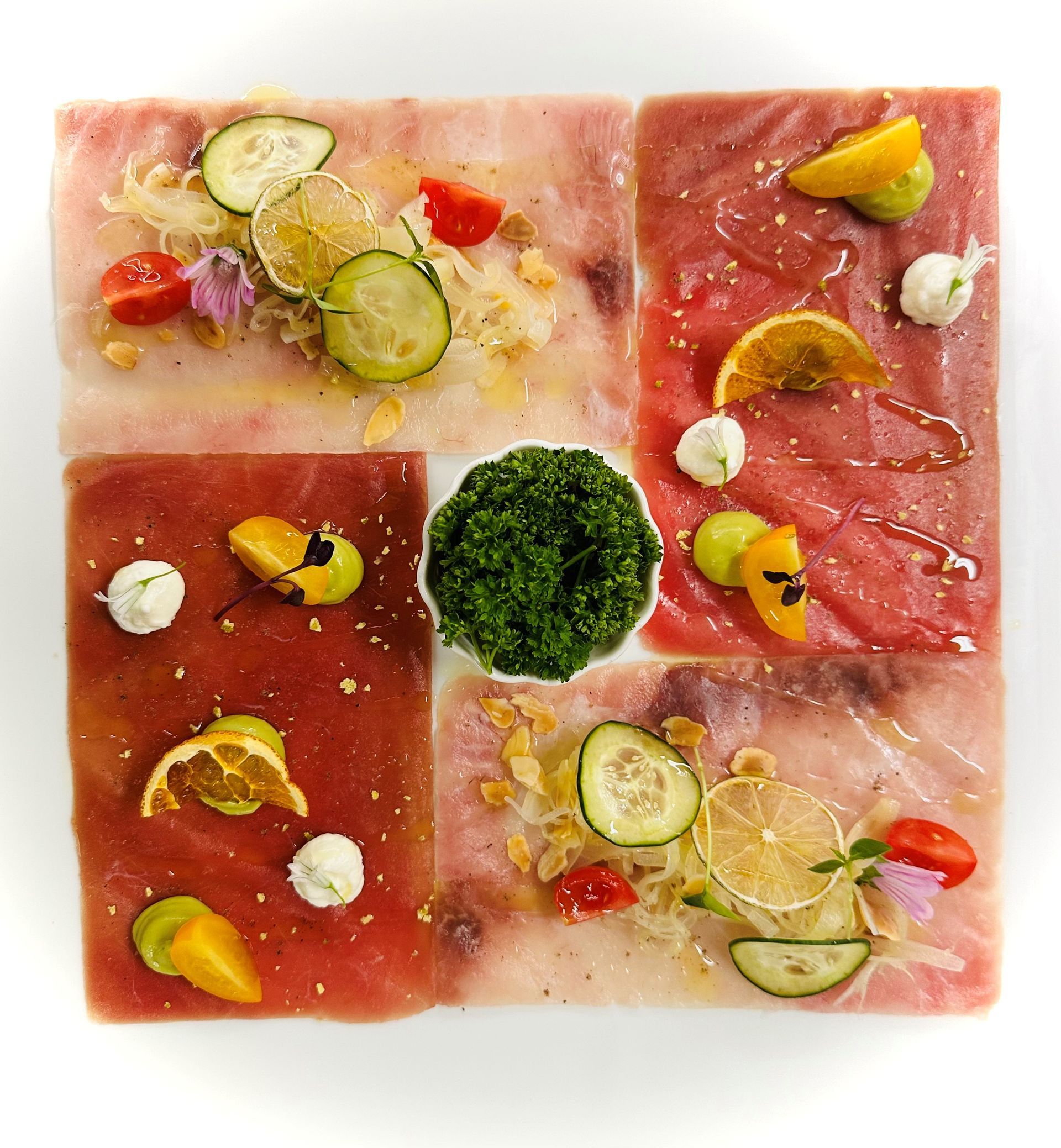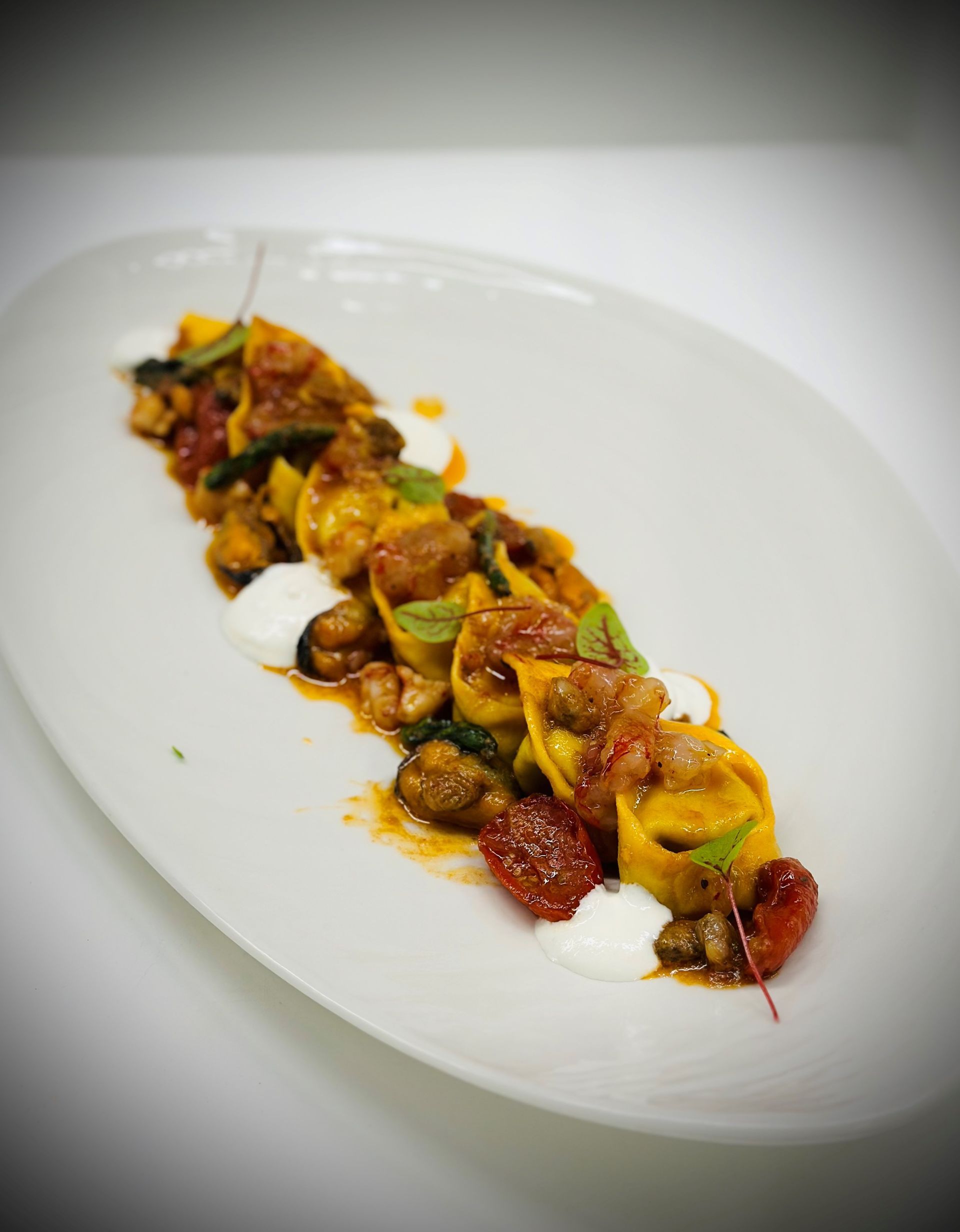 The ingredients used in the kitchen are selected from the best local produce, quality ingredients from small producers, supply chain companies, and Sardinian excellences, with a few concessions to high-end national products. These products are chosen to enhance the region and highlight the cuisine of the Golden Gate, blending traditional dishes with new proposals, between sea and land.